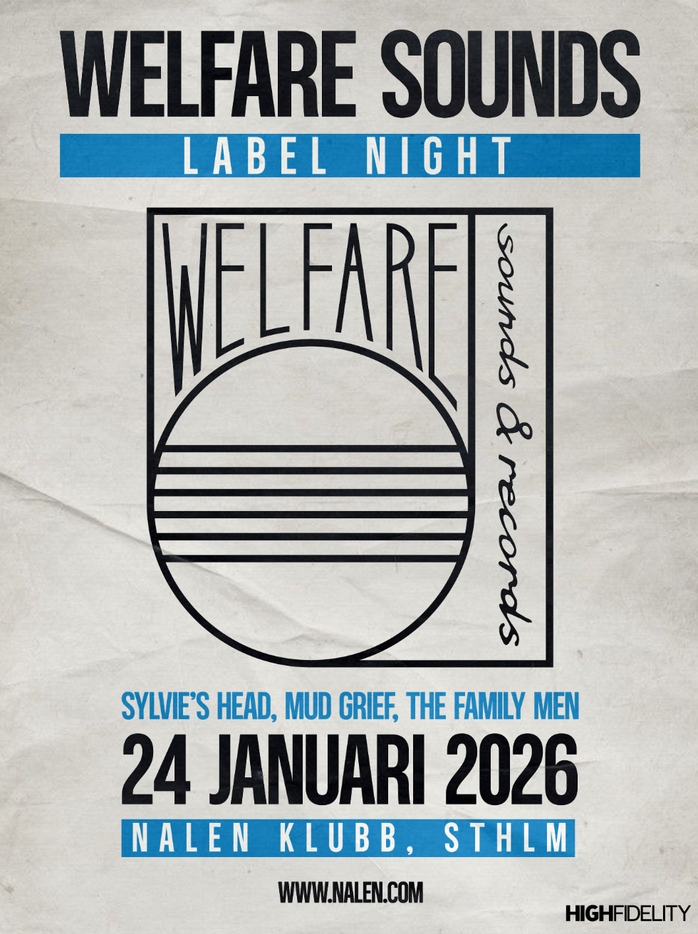 Västkustens snyggaste och mest envisa label tar över Stockholm! Welfare Sounds & Records kommer till Nalen med tre av GBGs mest spännande nya band: Mud Grief, Sylvies Head och The Family Men.