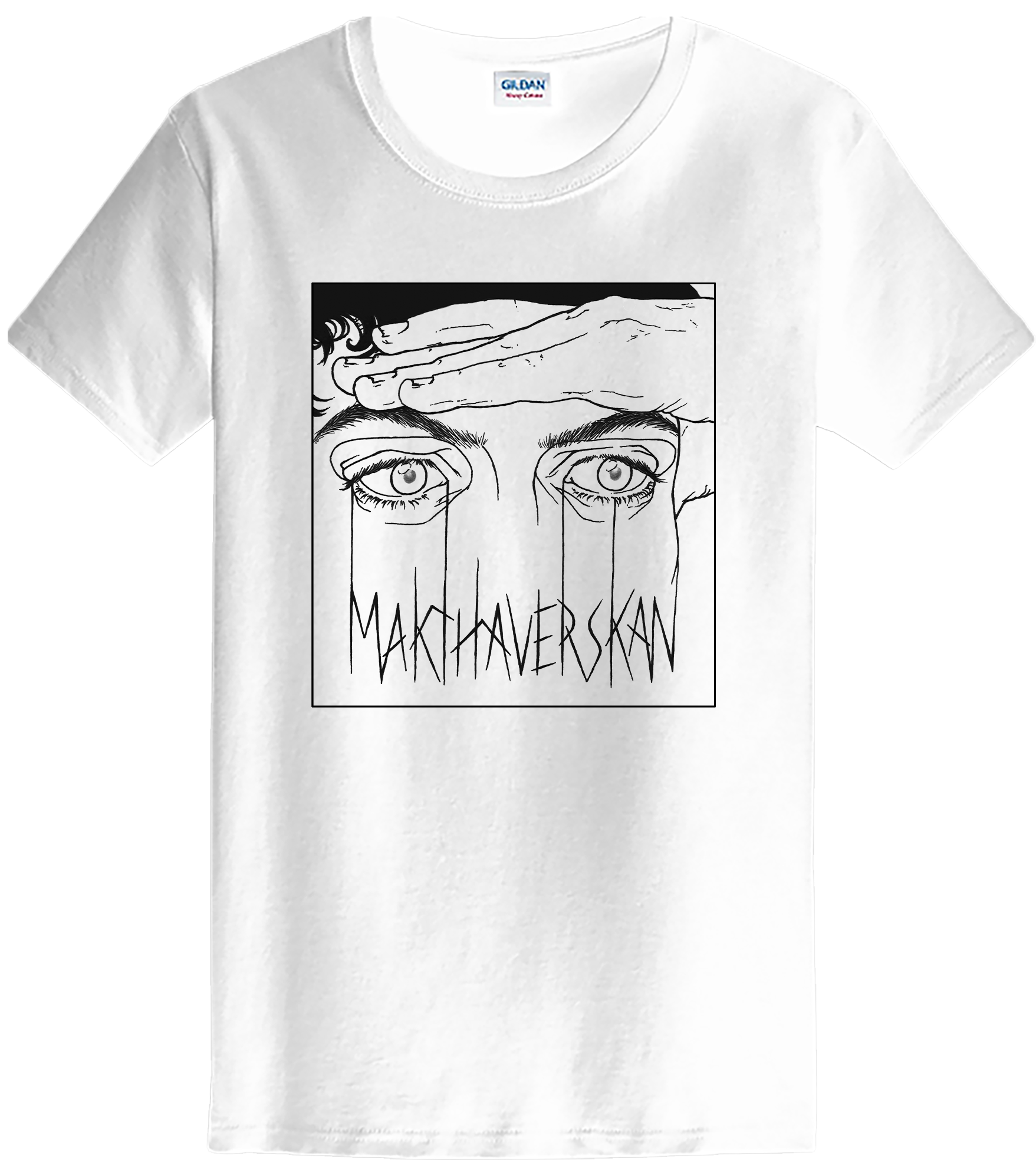 White Makthaverskan t-shirt with black print.